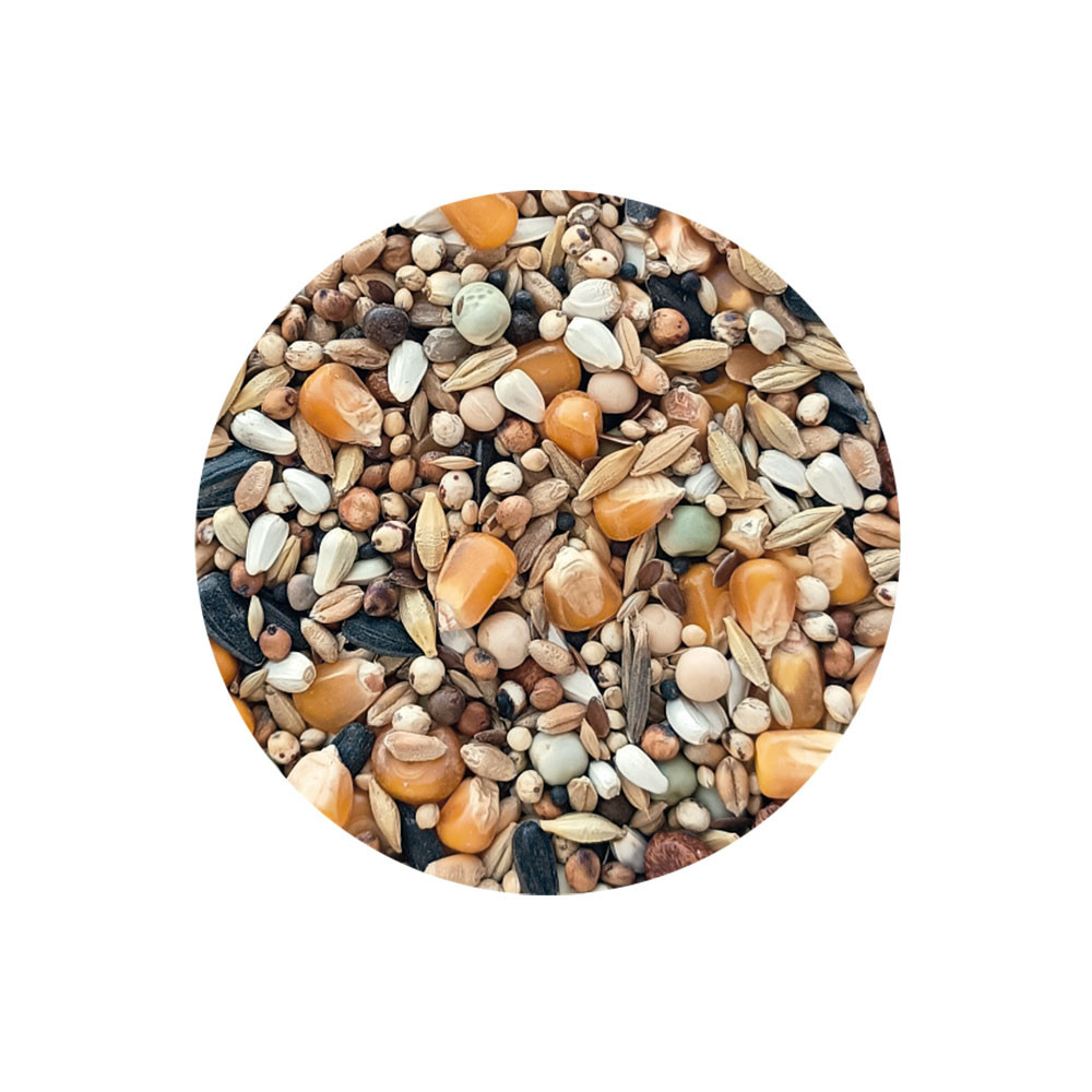 Mistura de sementes completa e equilibrada, especialmente formulada para pombos durante o período de muda.