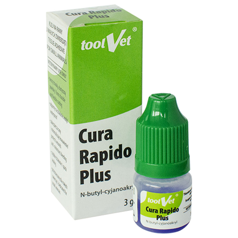 Cura Rapido Plus é um penso líquido inovador utilizado no tratamento de cortes, lacerações e feridas nas pontas dos dedos de animais. Ao entrar em contato com a pele e o sangue, endurece em segundos, formando uma camada rígida, translúcida e impermeável que sela a ferida e protege contra microrganismos. Esta camada auxilia no processo de cicatrização da ferida ao longo do tempo e se decompõe naturalmente à medida que a pele cicatriza.